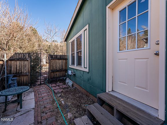Your piece of heaven, Out-of-Town feel, yet still in town! Bordering Open Space (front & back), so this home has great Privacy w/ multiple level patios, Fountain River, & fire pit to relax and enjoy the gorgeous weather Flagstaff offers. New windows, 2019 gas stove & dishwasher, 2017 washer & dryer, and Bonus Office in garage! Gardeners Dream! So many fruit trees/bushes: 2 Apple, 2 Cherry, Pear, Plumb, Blackberries, Grape, etc. Urban trail is right across the road facing the huge hill. Inside you are welcomed by a tiled floor Medallion and you have everything you need with vaulted ceilings, open kitchen, Garden Tub, & good-sized rooms. Whether for your home or a rental, this is a diamond in the rough.Tenants will be out by the end of January. Solar panels are leased with Rooftop Solar