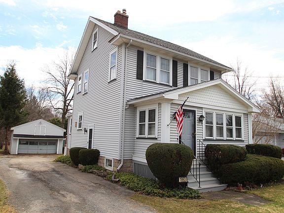 This 1250 SF Colonial features 3 bedrooms and 1.5 baths! Gleaming hardwoods in the bedrooms, comfortable Living Room with woodstove that can heat entire house, breakfast nook in kitchen, and Formal Dining Room. Updates include: new siding on house and garage, storage space added to garage, new kitchen stove, new hot water heater, new sump pump, and sliding glass door in kitchen.