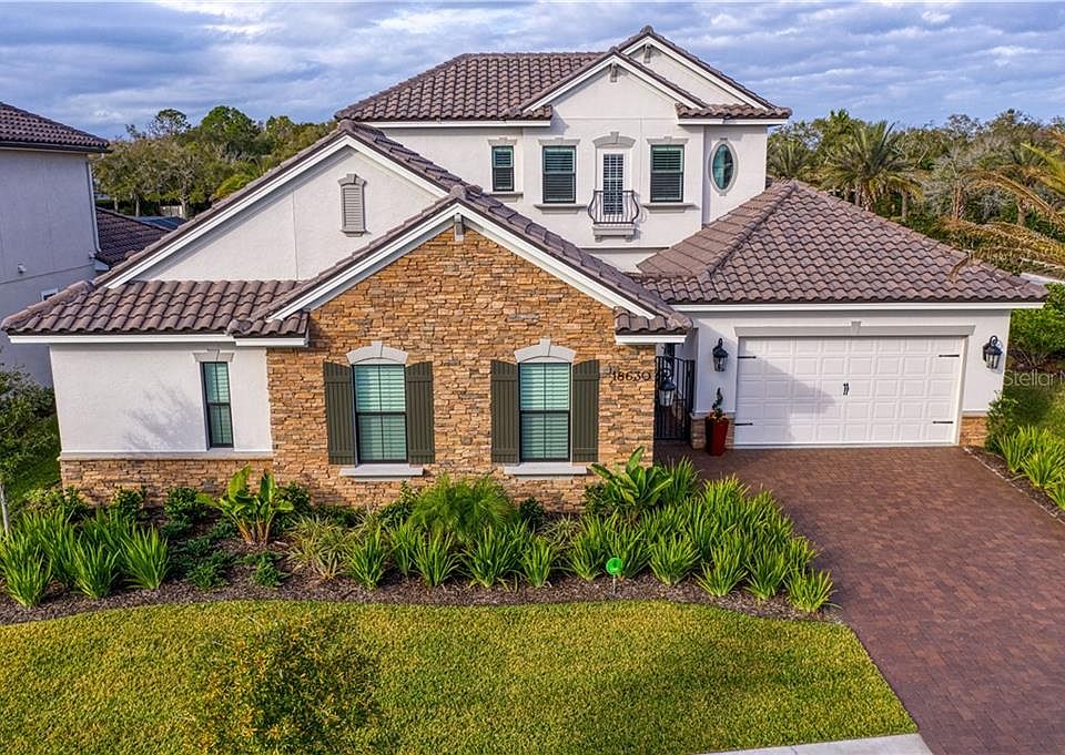 Exquisite Taylor Morrison BUILT IN 2020 home offers the perfect floor plan with a spectacular water & golf course view with 'over the top' designer finishes & upgrades that are right out of Architectural Digest! Exceptional opportunity in gated Cheval Country Club's newest community, "Beauvais" offers DOWNSTAIRS MASTER, split plan, large open concept, stunning kitchen, 4 beds/5 baths, plus office, & large bonus room over the garage are just a few of the must haves for today's modern family. As you enter the courtyard of this home you are quickly drawn to the privacy and special features this special home has to offer. Upon stepping into the foyer, you are greeted by soaring ceilings, tons of natural light, soothing colors, a spectacular water view & the absolute grandeur of this carefully designed space. This open floorplan is framed by designer motorized shades, plantation shutters, & gorgeous silk draperies throughout. Luxury light fixtures grace every room with a special glow. Glass tiles frame this chefs kitchen boasting a stainless farm sink on a large quartz island, GE Monogram appliances to include; double oven, refrigerator, dishwasher, microwave, 6 burner gas stovetop, beverage center, & pot filler. Perfect for entertaining, the formal dining room is adjacent to butler's pantry & large customized walk-in pantry , 2 drop zones and mud room for added organization. Relax or entertain in your heated saltwater pool & spa or enjoy the sun deck & water feature while preparing a special meal in your outdoor custom kitchen. Bonus room can be used for a media room, additional bedroom(s) with full bath, exercise room, and/or converted to a home gym. Amenities include triple sliders, 2 AC's, water softener, abundant storage, custom closets, 42"cabinets, & impeccable design details which make this home elegant, functional, and modern for today's lifestyle.
