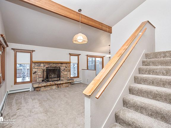 IMMACULATE 3 bedroom, 2 bathroom townhouse located in the highly coveted Eaglewood community! Tucked away on a peaceful street with close access to JBER, downtown Anchorage, dining and more, this house is perfectly located. You will be impressed by the HIGH-VAULTED ceiling in the living area accompanied by a gorgeous wood-burning fireplace.