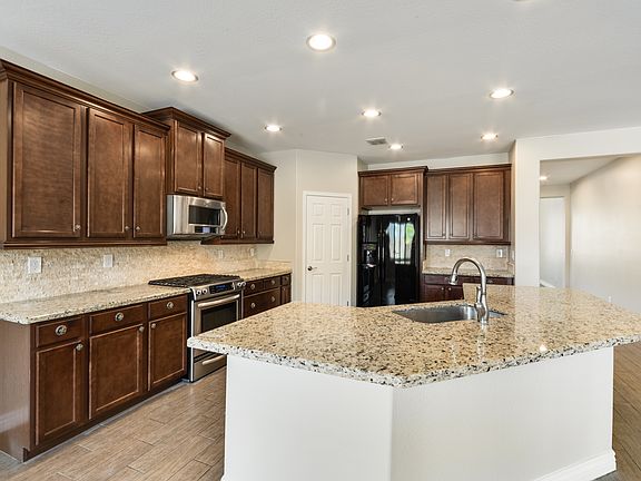 This beautiful 4 bed, 3 bath home with an office/den will check all of your boxes! An open floor plan with excellent neutral-toned paint and crisp white plantation shutters, making each room light and bright! The wood-like flooring really makes the house pop! Your eat-in kitchen has immaculate granite counters, staggered wood cabinets, a spacious island with breakfast bar, and matching appliances! The bedroom and full bath on the bottom floor is perfect for when guests come to town. Upstairs there is an oversized loft, that overlooks the formal dining and living room. All of the bedrooms are exceptional in size and glow with great lighting! The backyard has low maintenance landscaping, allowing you to enjoy the yard even more! Schedule your showing today!