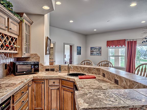Strategically located w/majestic views of Pikes Peak this Woodmoor custom home has it all. Welcoming covered front porch w/security camera & leaded front door. Tile entry w/ closet opens into great room that includes; 16ft. cathedral ceilings, built-in entertainment unit w/ nooks & shelves, floor to ceiling stone fireplace, wall of windows w/ custom treatments to enjoy the Front Range views. Gourmet kitchen is designed for multiple cooks & includes slab granite island plus separate Corian eating bar, maple cabinets, Jennaire dishwasher & double wall ovens (both convection & self-cleaning),Dacor gas cook top, 2 sinks, planning desk & walk-out breakfast nook to TimberTech deck w/ Pikes Peak views. Main master retreat w/gas fireplace, walk-in closet, bay sitting area, walk-out to deck, beautiful 5 piece bath including oversized shower, jetted tub, dual sinks, built-in vanity & decorative entry cabinet. Main level features; office, additional bedroom, formal dining with tray ceiling, powder room w/designer vanity, laundry & butler’s pantry, including sink & plenty of extra maple cabinets & gleaming hardwood floors throughout. Lower level features; walk-out family area w/gas fireplace including built-in entertainment center, huge game room w/wet bar , 3 additional bedrooms all with large walk-in closets, 2nd office, fitness room including playroom, 2 additional baths & storage areas. Extras; cathedral ceilings, gleaming hardwood floors, central vacuum, A/C, security & sprinkler system. Building permit was pulled in 2004, home was completed in July 2005.