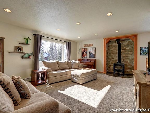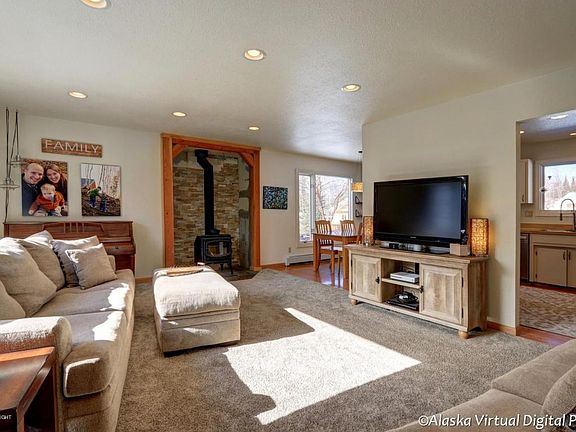 Great home with huge fenced yard...feels like you are in the country but such easy access to Eagle River, nearly half acre lot, very usable...tons of storage, chicken coop, 9 raised garden beds, and double gated side fence for all your toys. Large deck, recently remodeled master suite with private bath and walk in closet. Super home with newer carpet and no HOA. Trims being completed. Must see.