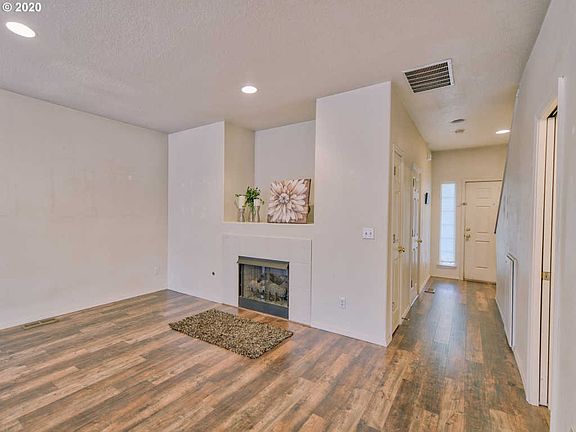 Affordable corner home w/high ceilings & lots of natural light. Main floor w/newer wood laminate floors(Aug.'18) Island kitchen next to dining w/sliding door to private, low-maintenance backyard Spacious master bedrm. All bedrms have vaulted ceilings. Upstairs has brand new carpets & vinyl floors in baths. Upstairs laundry.Prime location close to shops, food cart pod, freeway&bus.