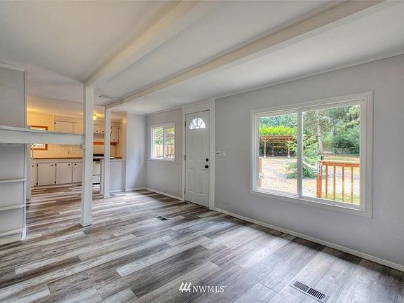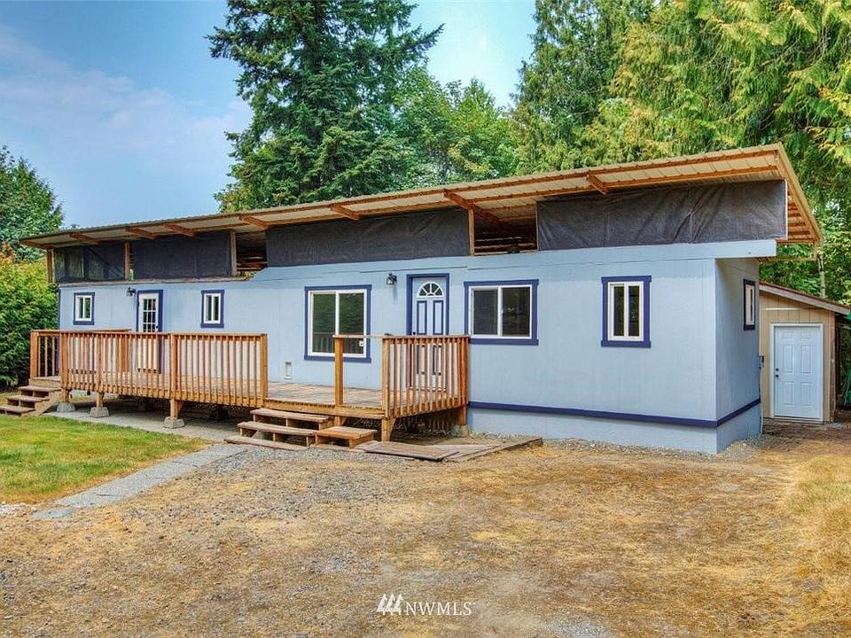 Recently updated, ready to move in 2 bed 1 bath manufactured home on almost 1/2 acre of land with greenbelt behind the home with lots of trees to keep the home cool during the summer. New flooring and paint. Cover over roof to help extend life of the roof and protect it so rain and snow don't build up on your roof, also to provide extra shade to keep it cooler. Relax on either the front or back deck and watch the deer. 2 detached carports and outbuilding with covered area. Award winning Tahoma School district. Lots of room to build a shop or your new home.