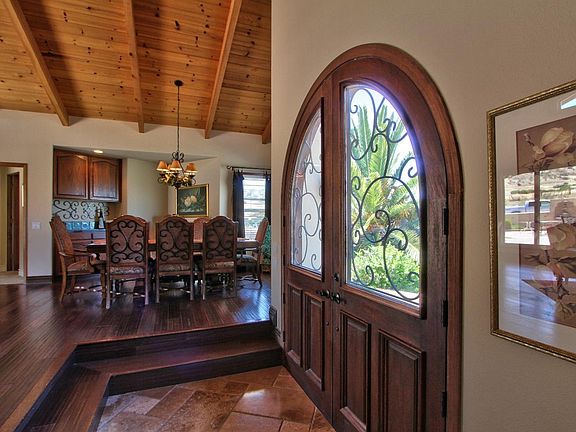 Fabulous single story on a acre lot with mountain views. This is the one that combines it all!!. Incredible Chef's kitchen with top of the line appliances and large pantry. Travertine floors lead you around an open floor plan concept and to a huge family room with surround sound. Elegant french doors out to one of the finest outdoor living spaces in the area complete with outdoor fireplace and kitchen. Circular driveway a huge plus and with plenty of parking for toys and a massive 4 car garage. Don't Miss