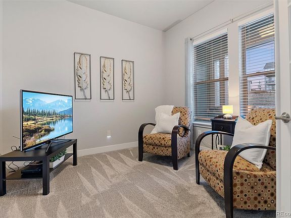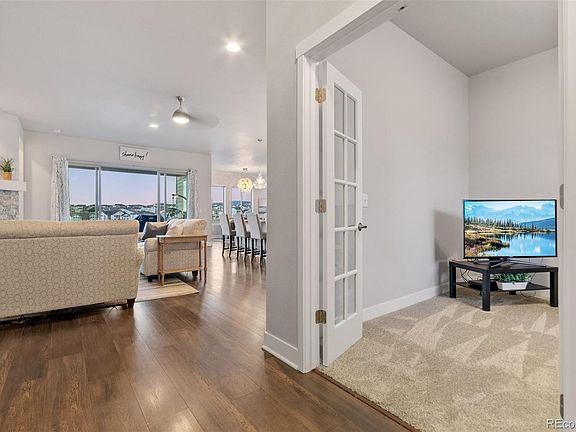 Welcome to your personal retreat in the heart of NW Arvada’s picturesque landscape in this David Weekley ranch-style home. Boasting unparalleled views & stunning upgrades throughout, this residence offers comfort & sophistication. Step inside to discover an inviting open floor plan, where the living room and upgraded kitchen take center stage with high ceilings, stone fireplace, quartz countertops, top-of-the-line appliances, Chef's Hood & pot filler, this home is perfect for culinary enthusiasts & entertainers alike. Adjacent to the kitchen & living room, a spacious dining room offers views of the surrounding mountains, creating the perfect backdrop for elegant dinners & memorable gatherings. A formal sitting area provides the ideal setting for intimate conversations or quiet moments of relaxation. Escape the day in the large primary bedroom flooded with natural light from the oversized windows with views of the greenbelt, pond & mountains. The spa-like ensuite beckons with its oversized shower, dual quartz vanities & expansive walk-in closet, providing the ultimate retreat. The main floor also features 2 more bedrooms that share a Jack & Jill style bath, as well as a half bath for guests. A large mudroom with ample storage & closet space, is located just off the owner's entry, while the adjacent laundry room adds to the home's convenience. The finished, walkout basement is a haven for entertainment, offering endless possibilities. In addition to a spacious entertainment area, the basement features an additional large bedroom, full bath & over 700 sq ft of unfinished space, providing ample room for customization & expansion.