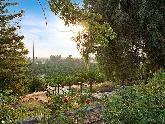 This home features the craftsmanship of architect Clarence Cullimore of Bakersfield. Built in 1936 of solid adobe bricks, it sits nestled at the top of a hill over looking the valley and Sierras in every direction. The architect spared nothing when designing this home. Hardwood floors, stone insets in the windows, a covered patio that spans the entire width of the house, a charming guest/pool house, basement and tons of storage. A small producing citrus grove slopes the hill In front of the home with a neighboring .48 parcel lot that comes with this sale as well.