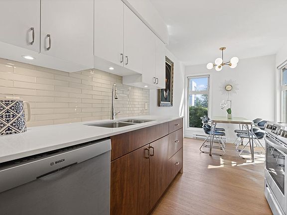 This is the 1 bed + den you've been waiting for - recently renovated and in one of the best buildings off Commercial Drive, you don't want to miss this gem! Beautiful & durable vinyl plank throughout, custom kitchen w/ high-end s/s appliances and an extra eating nook w/ windows. The spacious living room boasts a cool mid-century modern wood-burning fireplace, plus lots of south-facing windows & cute balcony. The flexible den feats built-ins perfect for a WFH office. Building was rainscreened in 2010 incl hardi-board siding, new balconies & windows, & updates to parkade membrane in 2014. 1 parking & 1 storage locker is included. 1 cat & RENTALS ALLOWED!