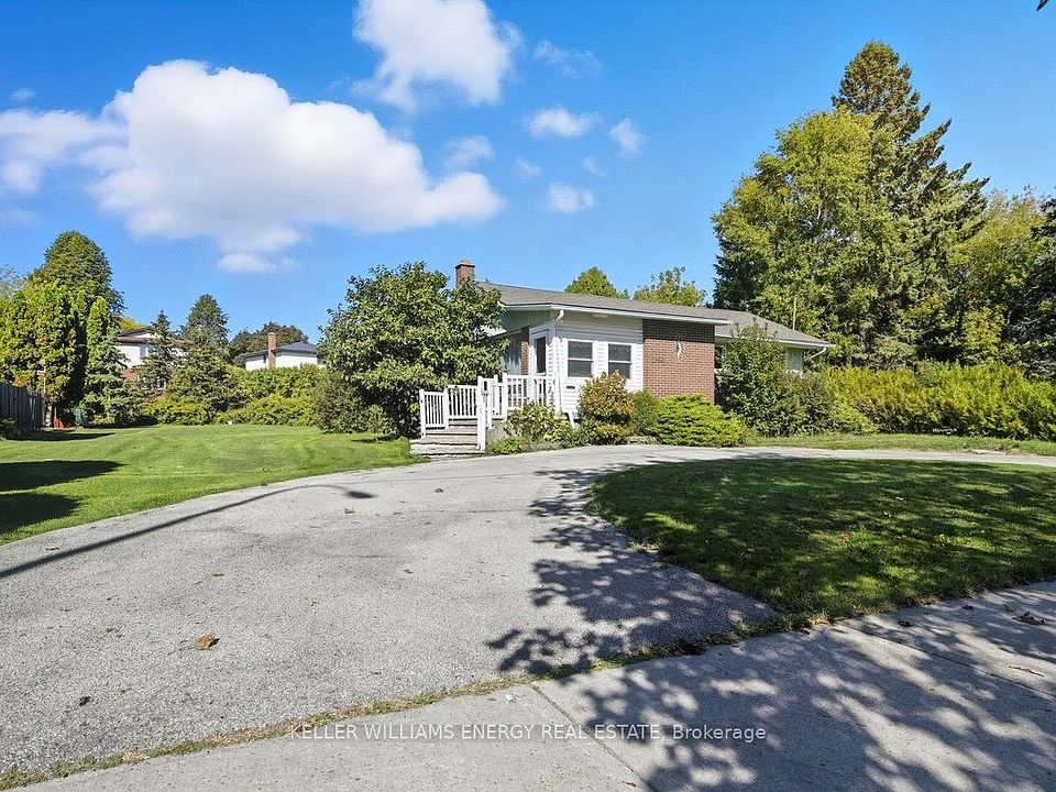 Opportunity knocks! Mid-century modern lines meet country-in-the-city living in this Blue Grass Meadows bungalow set on a spectacular 95 x 180 ft lot under half an acre of breathing room right in town. Inside, four bedrooms and two main-floor baths make family life easy, while the renovated kitchen and massive breakfast area spill into a 19 x 13 living room made for gatherings. The lower level adds a recreation room with beamed ceilings, fireplace and a workshop any woodworker would envy. Two separate basement entrances open the door to endless possibilities income suite, studio, or multi-generational setup. Just minutes from major shopping, the 401, 407, and GO Station, and steps to both Westminster United Church and Masjid-e-Ayesha. An exceptional chance to renovate, rent, or custom-build on one of the largest in-town lots you'll find.