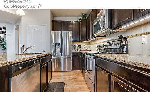 West Loveland home close to the new Mehaffey Park! Nestled near Foothills in Quiet Neighborhood. Spacious Master Suite and Laundry are on Main Level! 3 Bedrooms + Loft, 2 1/2 Baths. Vaulted Ceilings! Kitchen with Granite Counters, Wood Floors + Island Breakfast Bar that opens to the Living Area. Upstairs has 2 additional bedrooms plus Loft. Partial unfinished basement, 2 car garage. Backyard Deck. Upgraded Carpet and Backsplash. Central Air! Original owner and Well Kept home. Home faces West.