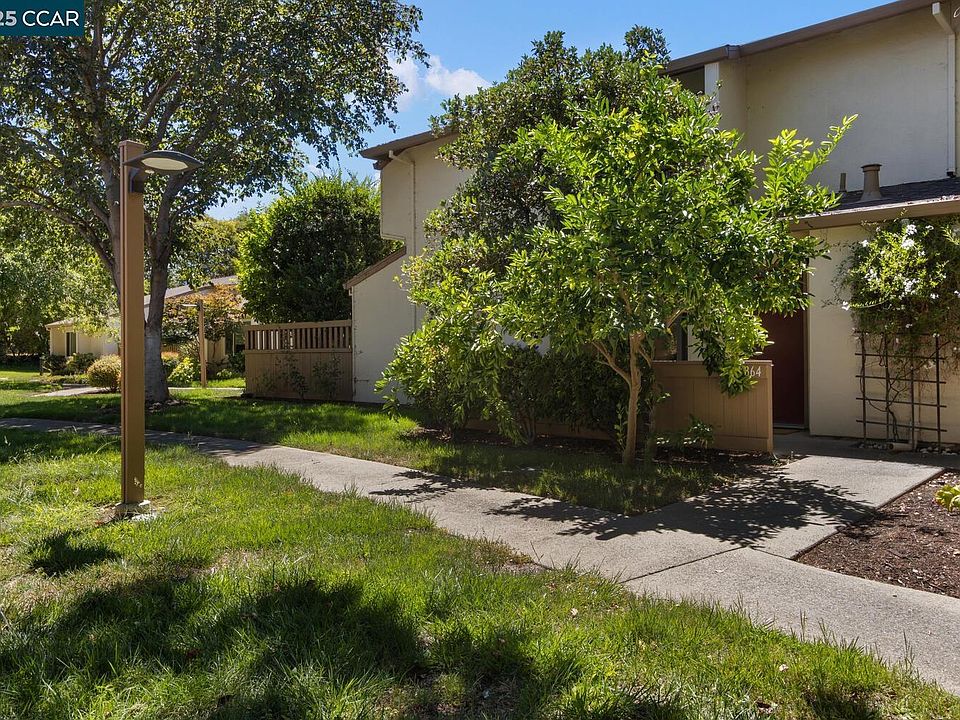 1864 Pomar Way is a townhome situated on a prime location at Sunset Park in Walnut Creek. A completely repainted modern home with premium vinyl plank flooring downstairs and new carpet upstairs. This stylish home boasts updated baths and a remodeled kitchen with newer appliances including range, refrigerator, recessed lights, and in-unit laundry, making daily chores a breeze. Both front and back patios are finished with concrete floors, one by the entrance and one off the Kitchen and Dining area in back that connects to the covered carport space and storage. The primary bedroom has a covered balcony overlooking the courtyard. The second bedroom can be a guest room or an office for remote work. This home offers unparalleled convenience with easy access to the club house, pool, and sports parks. You’ll also appreciate the proximity to Trails, parks and John Muir Hospital, freeway access, BART, and shopping. No rental restrictions, this home is perfect for investors as well. Don’t miss out on this incredible opportunity.