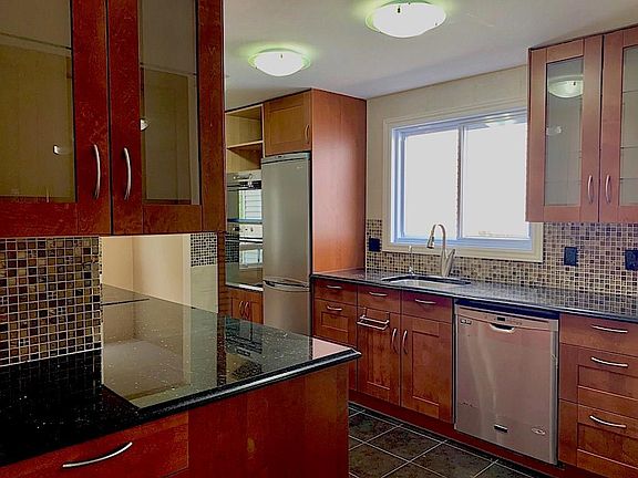 Available immediately. This three bedroom home backs onto parkland and features a completely renovated kitchen with granite counters, stainless steel appliances, lots of cupboards and an amazing pantry. Large living room and dining room with a wood fireplace. 4 bathrooms. Basement finished including a very convenient and spacious laundry. Master bedroom with a 2 piece bathroom and walk-in closet. 2 other spacious bedrooms. Private backyard with patio and a big shed. Tenant pays utilities. Rental application, credit report, work letter, references and first and last month required. No smoking allowed.
