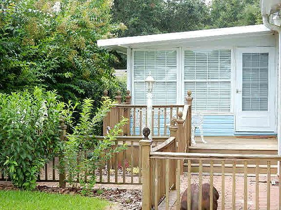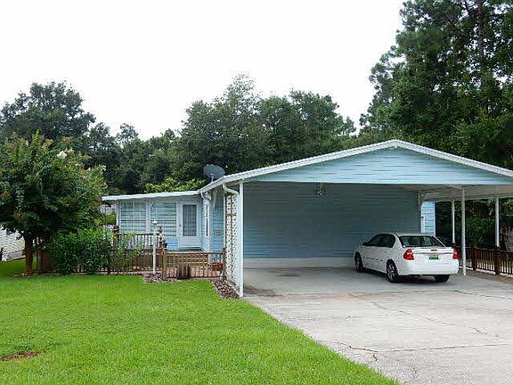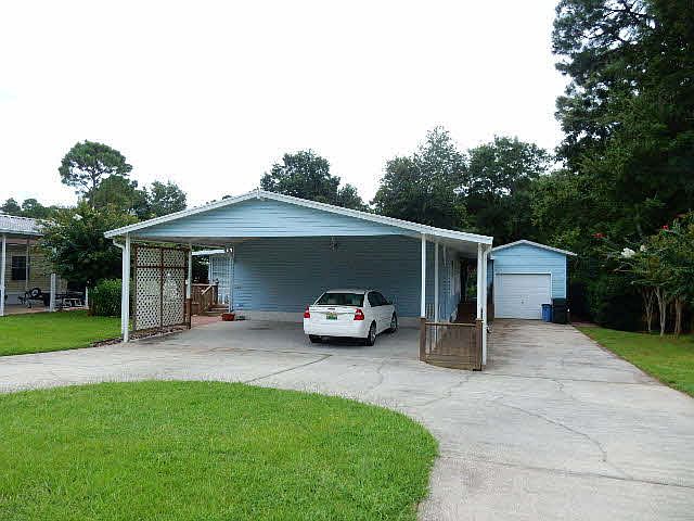 Excellent doublewide in Spanish Cove! This house has 3 bedrooms and 2 baths. It has a heated & cooled sunroom that is 11x23. New roof 2016 & new HVAC 2016. This house has been very well kept up. One owner home. The house has a circle drive, a very high two car carport & a single car garage all accessible without going out in the rain. Garage is also a workshop. Plenty of room to park a boat or RV. It has a covered porch in the back plus a hugh deck & gazebo. This house has a stucco skirting instead of the usual plastic. The pictures inside house are not the best because they have moving boxes everywhere. Come see this house! Spanish Cove amenities include year round pool, fishing pier, tennis courts, Excerise Bldg. 2 clubhouses and 24 hr security. Lillian has a public boat ramp & fishing pier. Close to beaches & the naval air base.