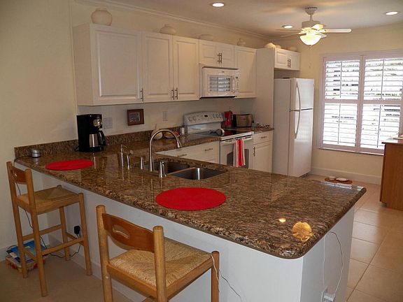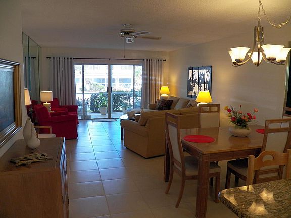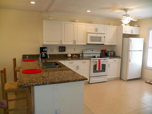 Newly and tastefully remodeled, open floor plan unit with 18'' tiles throughout including patio area. New kitchen with white cabinets and granite counter tops and plantation shutters. Both showers have enclosures and new lighting. Large open screened patio with full view of canal out to the wide water of the St. Lucie River. Just a short walk to the pool to view the sunsets with a glass of wine with your friends. Accordion shutters, freshly painted. MRS CLEAN LIVES HERE!!!! Two pools and a clubhouse with many activities, dock your boat right in the community. New roof in 2017 Well maintained and fiscally responsible community