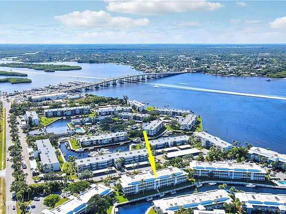 MOVE IN READΥ ΒΕAUTIFUᏞLΥ updated & remodeled! ЅPΑCIOUS FLOORPLAN! Elevator building! Have your boat HERE on the ST LUCIE RIVER & travel to the INTRACOASTAL & THE ST LUCIE INLET for FISHING! Always SHADED north-facing screened & tiled lanai overlooks the marina & active boating canal. Year-round enjoyment & STUNNING sunsets. The open-concept layout features a totally remodeled kitchen, GORGEOUS granite countertops, glass tile backsplash, light cabinets, oversized DEEP sink & LARGE island that seats 5. Wood-look CERAMIC tile floors through & a new Electrolux washer & dryer add convenience. Hurricane shutters for all windows. A boat slip is available for rent for approximately $125. per year. Bring your 20 lb (or less) dog or cat! Windjammer is an active over 55 complex that offers 3 heated pools, a busy clubhouse with activities, parties, yoga, water aerobics, & MORE! All just minutes from historic downtown Stuart’s charming shops, dining, riverfront, theater & BEACH!