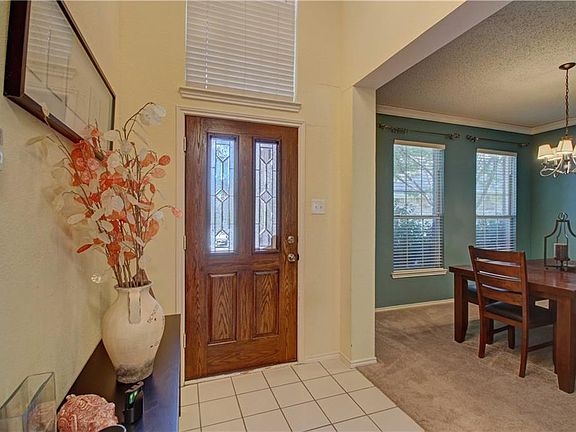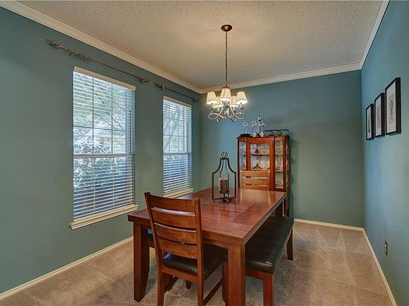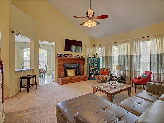 Stately home positioned on turn of cul-de-sac in desirable Carrollton area. Large living area is graced by brick fireplace with gas starter open to large island kitchen and breakfast area enhanced by window seat. Soaring ceiling height, wood blinds and open stairwell create design choices along with downstairs formal dining and office with Murphy bed. Large master bedroom and two additional bedrooms upstairs with worlds of light and seclusion. Large back yard is treed and has all around sprinkler system and fence with charming open patio for family fun. Fridge, washer, dryer and outdoor grill stay if desired. Back door key is to be left in back door for showings and is needed to enter from back yard.