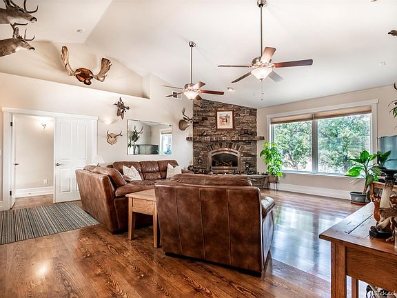 Nestled quietly on a beautiful lot, this custom home is the perfect escape for someone looking to buy an experience, as much as they are looking to buy a forever home. With a beautiful view of Stallion Springs, nestled amongst the oaks, this 4 bedroom 2.5 bathroom home has 2945 square feet of spacious living, large windows for tons of natural light, custom cabinetry throughout for loads of storage, large laundry room, a spectacular stone fireplace, a spacious living area with a separate dining room and eat in kitchen. Home has concrete walkways around the house for easy access to the large, covered patio and outbuilding that could be a potential she shed or added storage. Home has lots of exterior accent lighting, large rocks thoughtfully placed throughout the property and 2 A/C/Heating/Tankless Water Heaters to help with those utility bills. If you're looking for a home that feels like an escape, we'd love to invite you to schedule a private tour.