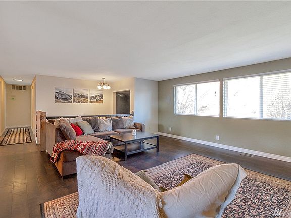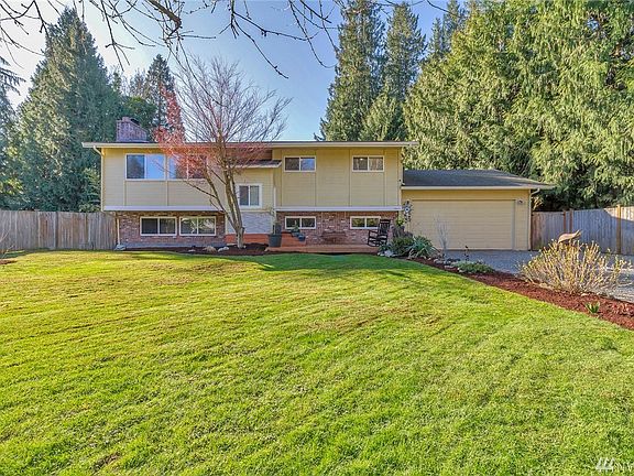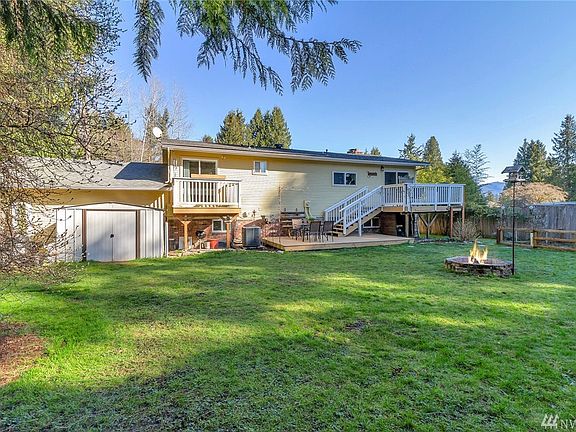 Maple Valley Heights 4 bed 2.5 bathroom home boasts a beautifully landscaped yard w/garden space, fruit tree's, custom arbor, gates, fire pit & living fence. The interior includes vaulted ceiling, kitchen w/center island opening up to spacious living room w/wood burning fireplace for cool winter nights. The Master bedroom w/southern exposure is warm w/plenty of natural light & private deck overlooking fully fenced backyard. Finished basement includes large bonus room w/new flooring. Must see!!