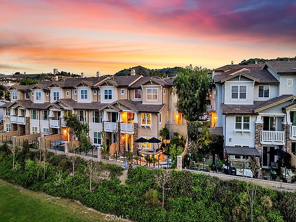 Introducing an amazing premium lot luxury townhome with unobstructed panoramic view in the highly prestigious Palisades of Vista Del Verde . This beautifully appointed home boasts tasteful upgrades throughout which shows great pride of ownership. Built in 2013, this end unit on the biggest lot in the complex has unique split-level design and shares only one wall with a neighbor. Home looks spacious, bright and airy. Whether you are relaxing on the patio, entertaining in the open kitchen/Great room, or spending a quiet evening, you can enjoy an open view of the city lights, sunrise/sunset, Catalina Island and Disneyland fireworks. It backs to a city park where you can walk the dogs and play with the kids. This Plan 4 model unit offers 4 bedrooms, 3.5 baths and a huge bonus room which can be the fifth bedroom or an office. Mid-floor master bedroom with a retreat sits on its own floor, separating from upstairs bedrooms. Open concept chef's kitchen has a huge center island, granite countertops and stainless steel appliances, adjacent to family entertainment Great room. The backyard is an entertainer delight and it includes slate hardscape with cozy/romantic lighting throughout. upgrades include: master bedroom remodel( new custom vanity, oversized mirror, all new lighting, 4"X11" double entry walk-in shower and self closing pocket door), smooth coat walls & ceilings, new stringers & baseboards, new door casings, new custom solid walnut steps throughout, new stairwell railings, new cabinet hardware, LED lighting, new dining room & living room fixtures, new large format 24"X48" porcelain tile throughout home and garage, new paint with accent walls, custom walnut sliding storage doors in garage base and paint to match interior, built-in wine frig 24"X34", built-in frig & sink with waterfall stone countertop in suite bedroom, the list just goes on & on ( pls see the supplemental list). Home is ideally located near top rated schools, the exclusive Black Gold Golf Course, entertainment, restaurants, the new town center and library. Enjoy the community's many amenities ; pool and spa, BBQ, picnic area, clubhouse, playground, recreation room, meeting room, green belts, walking trails, and so much more! Yorba Linda is rated as one of the top five safest cities in California. Don't miss this exceptional opportunity to make it your home. All furniture & appliances are available to purchase. Don't forget to watch our 3-D virtual tour and video.