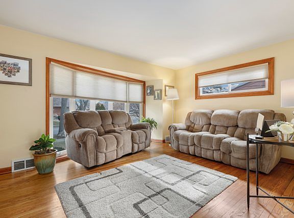 Just move in and start making memories in this charming two story home in the heart of Homewood. Pride of ownership resonates throughout this clean and well cared for home, backing up to Millennium Park! The welcoming entry leads into the formal living room with stunning hardwood flooring and large bay window. Enjoy meals in the sunny kitchen boasting custom cabinetry, stainless steel appliances, breakfast bar, dinette area and easy access to the large back deck. This main floor also offers a convenient bedroom, full bath and flex room, perfect as another bedroom, den or family room. Upstairs you will find the spacious primary bedroom with double closets and streams of natural light. Two additional bedrooms and a spa-inspired full bath complete the upper level. Additional storage, more potential living space and laundry can be found in the full, unfinished basement. Outside, relax or grill on the large deck overlooking the beautiful yard with detached 2.5 car garage. Recent improvements include furnace 2022, roof 2019, water heater 2021, ac 2010. Just steps from Millennium Park with walking/bike paths, splash pad, playground, sports fields, basketball courts and more! Close to shopping, dining, schools, and Metra. A preferred lender offers a reduced interest rate for this listing. Come see today!