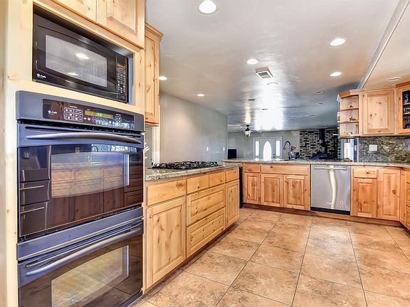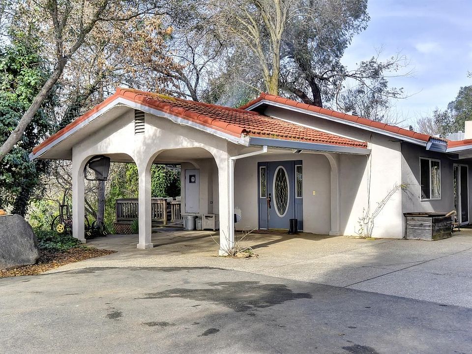 Beautiful home overlooking gorgeous pond & rock fountain outcropping, 18 acres. Features chef kitchen indoor & outdoor, 3 bed, 3 full baths. NID water feeds pond, pasture, irrigation. Shop 56 x 40, arena 105 x 167, barn 76 x 24. Office/storage 14 x 45, tack room 10 x 2, 2nd barn 36 x 48. Property features 12 stalls, 7 paddocks. Horse lovers dream. Separate detached guest cottage - great for favorite friends & relatives.