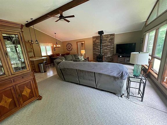 Located in a quiet area of Sugar Springs, sits this 3 Bedroom Ranch. Home has been fully renovated and freshly painted in soothing gray tones inside and out. Seller has replaced all paneling with drywall, new forced air furnace, humidifier and a/c, all new appliances throughout, new lighting, water softener, tankless hot water heater, metal roof and gutter guard system, plus has a detached 2 car garage with propane heat. Work from home with Spectrum internet and cable TV. Nice open floor plan, master bedroom with walk-in closet, beautiful blinds and wood burner for cool evenings. Ownership provides access to an 18 hole golf course , restaurant/pub, fitness center, indoor heated pool, tennis/bocce ball courts, chalet/sledding hill, walking (nature) trails, activity bldg, storage area, 2 all sports lakes, Lk Lancer/Lancelot, 15 beach clubs (5 with beach/bath house). Or fly to/from Sugar Springs off a 3500ft well maintained grass airpark. www.airnav.com 5M6. ALL just 2-1/2 hours from Detroit!