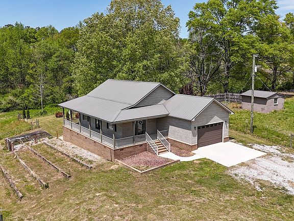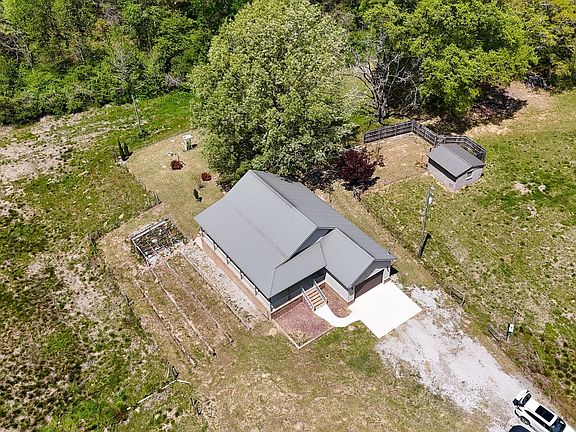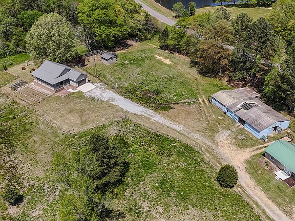 This charming 2-bedroom, 2-bathroom residence is set on 6.9 acres of picturesque land. It features hardwood floors throughout and a kitchen that highlights exquisite cabinetry and granite countertops. A lovely wrap-around porch provides a perfect spot to take in the stunning surroundings, while the back porch offers another fantastic area for enjoying the views. The property includes a 2-car garage, a garden/she-shed, and a storm shelter. Additionally, there is a mother-in-law suite featuring 2 bedrooms and 1 bathroom, along with a spacious workshop. The land is fenced and ready to accommodate farm animals, and it borders the serene Sandy Creek. Property has Hamilton and Detroit address