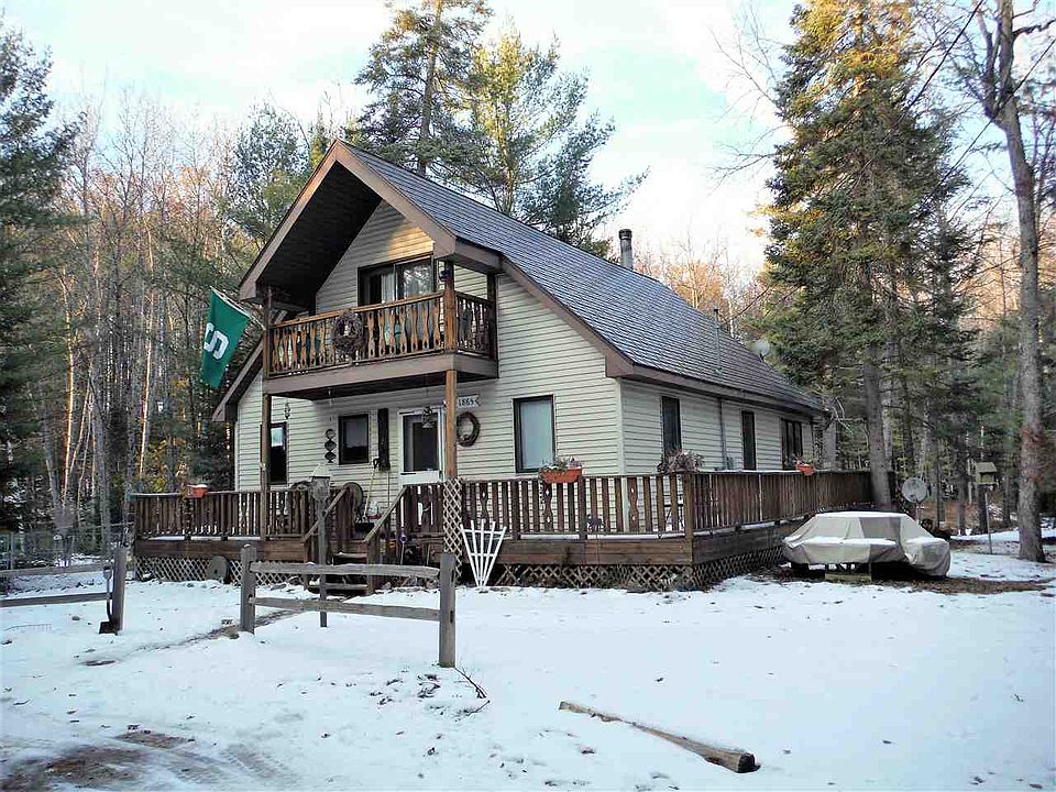 Charming Chalet situated on 3 1/2 acres of wooded land with it's own private 1/4 acre spring fed pond with 8 security cameras providing you full access from any smart phone. Home also offers private river access to the Au sable River just walking distance away. Launch your canoe and enjoy the peaceful solitude as you travel the beautifully wooded river. Home offers high cathedral ceilings with a lofted master and private upstairs bath, lower main floor bedroom and full bathroom. Kitchen is warm and rustic with lots of counter space coupled with an open floor plan which overlooks the dining area and living room. Spacious laundry area offers additional space for storage with full size washer and dryer. Relax and enjoy the wood burning stove while you overlook the private pond and wildlife that surrounds you. Plenty of room for entertaining on the wrap around deck, giving plenty of space for family and friends to gather. Newer Furnace and well, metal roof and Need room for toys? There is also a 12'x24' shed with concrete floor for additional storage. Schedule your private tour today and start enjoying the tranquil up North life!