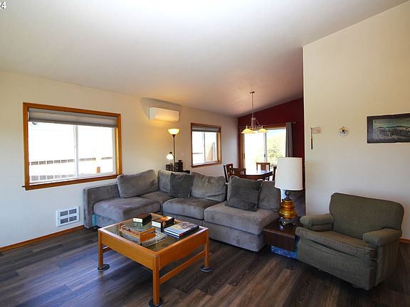 Single level, 3 bed, 2 bath home in Airport Heights neighborhood in North Bend & close to Coast Guard station. New Laminate floors & tile, Living area features High ceiling, skylight, & mini split heat pump. Spacious primary bedroom with en-suite and attached double car garage. Nicely landscaped front yard and completely fenced back yard. Beautiful OR Coast Beaches & State Parks. Priced to sell, make your appointment today.