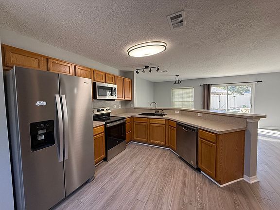 Available: NOW!! This charming 3-bedroom, 2.5-bathroom home features a fenced backyard, an extended patio, and beautiful landscaping. The first floor boasts an open-concept design with all new luxury vinyl plank flooring and includes brand-new stainless steel appliances, a kitchen with a large custom-built cabinet for extra storage, a breakfast bar, a dining area, and a living room, along with a convenient half bath. Upstairs, you will find all three bedrooms, including a spacious master suite with an attached bathroom. A washer and dryer are included with the unit and are offered "as-is." Autumn Glen provides lawn maintenance and access to all Fleming Island Plantation amenities. Please note that a minimum combined credit score of 500 is required, and the gross income must be at least three times the monthly rent. All residents are enrolled in the Resident Benefits Package (RBP) for $47.00/month which includes renter's insurance, credit building to help boost your credit score with timely rent payments, $1M Identity Protection, utility concierge service making utility connection a breeze during your move-in, our best-in-class resident rewards program, and much more! More details upon application.