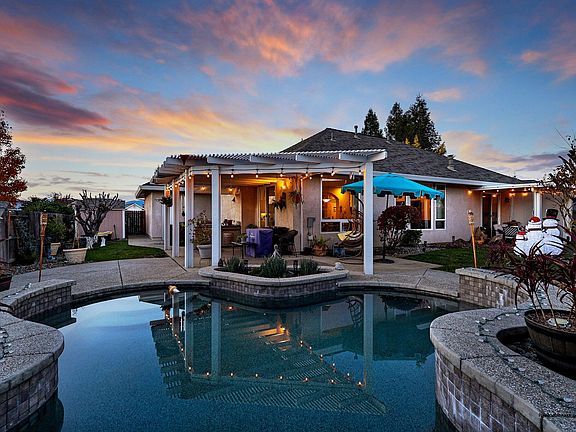 Experience the allure of this charming home, nestled in College Highlands—a neighborhood renowned for its prestige. A sense of calm envelops you with the soothing sound of waterfalls, leading to a glistening pool that promises leisure and tranquility. Spanning 2,218 square feet, the home includes 3 well-appointed bedrooms and 2 full bathrooms. The living room, with a warm gas fireplace, boasts a lofty ceiling that enhances its inviting feel. As you enter, be greeted by the gentle sound of a water fountain, heralding the peaceful atmosphere that permeates this residence. The home opens to a bright and welcoming floor plan, with a modern kitchen taking center stage, equipped with sleek stainless appliances, a high-quality gas range and a spacious pantry. The master suite is a retreat for relaxation, featuring a separate jetted tub, a dual vanity, a large walk-in closet, and a private covered patio that overlooks the landscaped yardadorned with mature fruit trees. The third bedroom, also with external access, adds versatility, ideal for guests or as a private study. Parking is plentiful with a three-car garage, and additional storage is provided by outdoor outbuildings. A newer roof and a whole-house fan are recent additions, ensuring your comfort. More than just aesthetically pleasing, this home melds luxury with functionality, situated on a quiet cul-de-sac framed by picturesque mountain vistas.