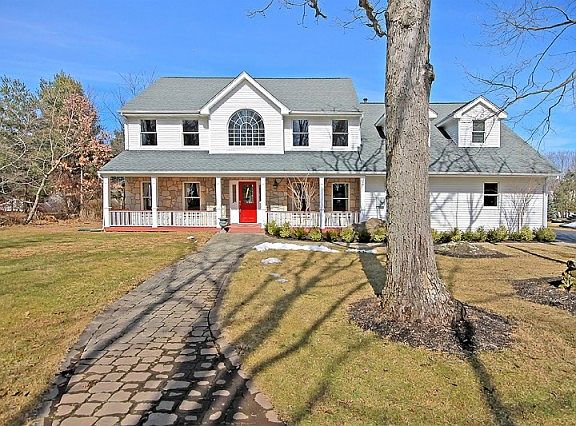 Enjoy beautiful views from your rocking chair porch of this Colonial set back from the road!This home offers grand 2 story entry flanked by gleaming hardwood floors of the formal living & dining room Sun drenched kitchen w vaulted ceilings,skylights,granite island,desk area & separate bumped out dining area w access to wrap around deck.The open floor plan allows for a wonderful flow into the expansive family room w high ceilings,walls of windows & built in custom wall unit.1st floor den,butlers pantry,powder & laundry rooms complete this level.Up the privacy back staircase you have in-law/au-pair suite w full bath, living area & bedroom w multiple closets.The master suite offers volume tray ceiling w uplighting, walk in closet & luxurious spa bath plus 2 add'l bedrooms & full bath. Living as is should be!