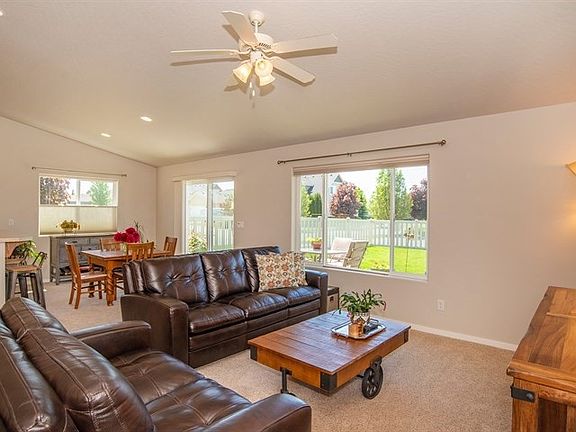 Perfect River District location and the Greenstone 'Arlington' zero step, open floor plan & Energy Star Certified! This home is truly better than new with everything done including: vinyl backyard fencing, up/down blinds, huge storage shed, extra alley parking, and ALL appliances stay including the washer & dryer! Enjoy the large, covered sit-on front porch and the spacious, fenced backyard and all the River District amenities - nearby parks, Centennial trail, close to shopping & freeway access.