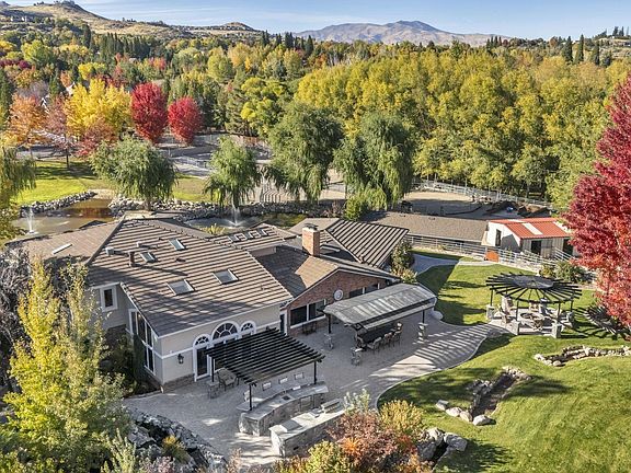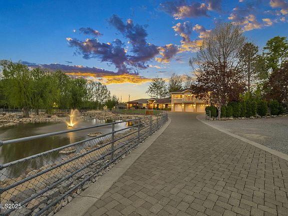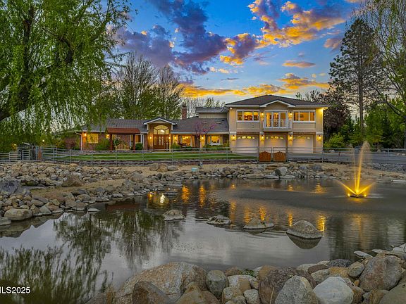 Welcome to this unparalleled South Suburban Reno Equestrian Estate. A magnificent 2.78 acre equestrian property with breathtaking mountain views and water rights. Immaculately designed and meticulously maintained, this 4,988 Sq Ft, 4-bedroom, 3.5-bathroom, 3-car garage home boasts 10 skylights and a recently remodeled chef’s kitchen featuring double sinks, granite countertops, and custom cabinetry. The primary suite has his-and-hers walk-in closets-showers-toilets, elegant carpet, and a bonus area., The home also features a finished basement, dual-zone AC, 2 fireplaces, 2 oil burners, a Generac 26 Kw generator connected to a 500-gallon underground propane tank, an upgraded new concrete tile roof with special ice underlay and ample space for storing RVs, horse trailers and other large equipment. Outside you will discover awe inspiring equestrian facilities accompanied with a landscaped paradise complete with a 608 Sq Ft greenhouse, potting shed, two ponds, waterfalls, and fountains. Designed for entertainment, the outdoor space includes a new oversized full outdoor kitchen, large paver patio and paver wraparound walkways, fire pit, three pergolas with fans, misters and a raised vegetable garden surrounded by 30 fruit trees. The expansive lawns, creek, ½ acre pasture, and horse amenities—including a large 24x84 steel Stable Barn outfitted with 5 stalls, paddocks, hay storage, a tack room, an automatic fly misting system, a 50-foot round pen and 70x140-foot arena have been designed for the equestrian enthusiast. This fully fenced property features electric gates with keypads, ensuring both security and privacy. A total of six outbuildings which also include a 20x60-1200 SqFt shop with finished and insulated rooms for mechanical work, woodwork, and gardening. Additional outbuildings include a 12x40 stucco pump barn with oversized pack room and storage as well as a 10x10 wood shed with new composite roofs. Located just 15 minutes from world-class skiing, 25 minutes from Lake Tahoe and 10 minutes from Reno Airport. AGENTS please read PRIVATE REMARKS for showing instructions and submitting offers.