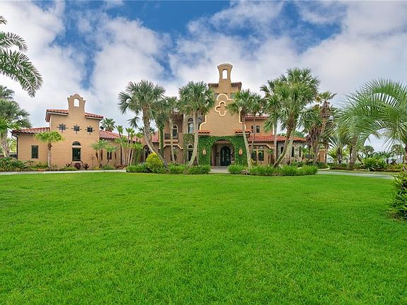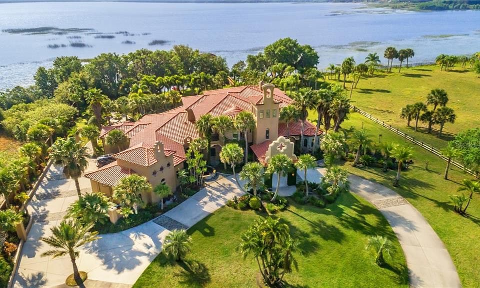 Custom built Spanish Mediterranean-style estate, over 8,000 square foot home situated on over 5 acres of lakefront property, with the possibility of acquiring the neighboring 20 Acres +/- , providing 2000 feet of private lakefront estate, all situated on a 8,352 acre, 12 lake chain of water in Osceola county, minutes from Lake Nona, the Space Coast and the Parks. WOW ~ incredible opportunity to own your own slice of paradise. This hidden oasis off Pine Grove Rd, with one of the longest stretches of Lake Frontage on the chain of lakes, offers a private estate in perfect harmony with its vast land rich and lake front environment. The home is a custom built Spanish Mediterranean-style estate, which is situated on over 5 acres. This beautiful custom built home was crafted with family in mind, family and for entertaining large family gatherings. The sanctuary boasts over 8000 square feet of luxury, comfort and many amenities that include an indoor/ outdoor oasis with pool / water slide, gym, splash-pad, walking trails, and is zoned for equestrian lovers too. There are five unique bedrooms ~ all designed for comfort, luxury and personal appeal. The master suite includes its' own private master retreat which overlooks the back area of this home and boat dock and private view of an expanse body of water that seems like an ocean. From the moment you enter the "castle", you're welcomed into a formal yet comfortable grand living room, dining area and distant view of the wrap around entertainment area of the house. This area is truly one of a kind, fully enclosed pergola in glass walls ... overlooking the luxurious pool and the entire back area of this estate, along with stunning views of your own private part of "the chain of lakes". The living room also features an impressive fireplace, wood imported from Mexico and inlaid in Travertine throughout the first floor. The spacious gourmet-style kitchen, which includes multiple refrigerators and a generous dining area, flows seamlessly into the family room which features an 800-gallon fish tank. The area is rated as one of the best places to live and raise a family just down the street from the Lake Nona Medical Centers.