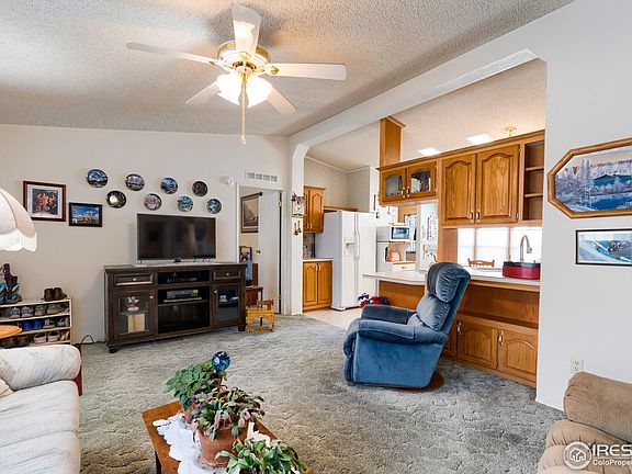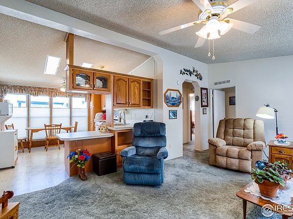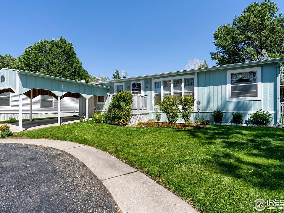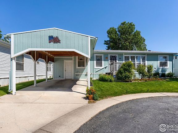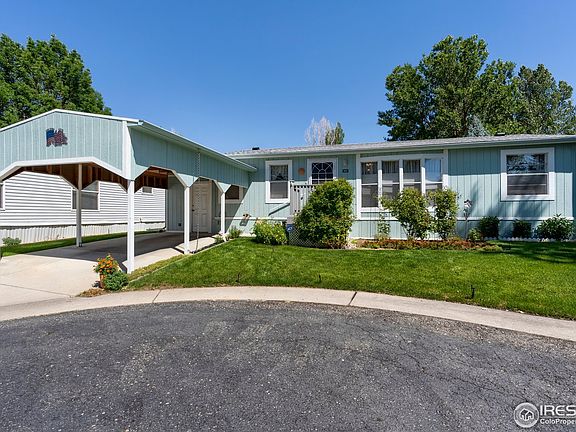 Very well kept 3 bedroom, 2 bathroom home in Sunset Park in Loveland. Sunset Park is a nice and quiet 55 and over neighborhood. This home is in a tranquil cul-de-sac. It has a carport to help protect your car from the Colorado elements. Great looking large storage area built on to the side of the home. The home sits on the lot so that it gets a lot of natural light. Inside features an open feeling from the kitchen to the living room. Oven/Range, Dishwasher and Refrigerator all stay. Vaulted ceilings. Newer roof and mechanical. Large master bathroom. Sprinklers for the yard. Nearby shopping and dining. Easy access to I-25 or downtown Loveland. You will be hard pressed to find a nicer one! Cash only, as is sale.
