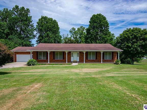 Gorgeous all brick ranch home with 4 bedrooms and 2 full baths on two and a half acres and a beautiful country setting. It features a full unfinished walk-out basement roughed in for an additional bath. Level yard for easy access to concrete drive an car port an garage with handicap access to the front door. Also a spacious living room, large kitchen, fireplace in living room (which is great to entertain the whole family). This is a one owner custom built home. You have to see the views from the covered back porch over looking the farm to understand the serenity.