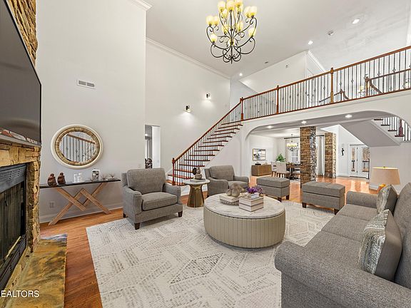 MOTIVATED SELLER!!! EXECUTIVE 8BR/6.5BA ALL BRICK HOME WITH THREE CAR GARAGE ON MAIN LEVEL, THEATRE ROOM, GAMEROOM, OFFICE, FORMAL DINING, TWO KITCHENS, AND IN LAW QUARTERS IN SEVIERVILLE, TN! LOCATED IN HIGHLY SOUGHT AFTER, LANDMARK POINT SUBDIVISION. STAIRCASE LEADING TO A THIRD UNFINISHED 1,473 SQ.FT. ATTIC SPACE THAT COULD POTENTIALLY BE FINISHED TO ADD A THIRD LEVEL. Interior features include hardwood flooring, tile, recessed lighting and soaring vaulted ceilings. Enjoy the open floorplan and massive river rock accented fireplace in the living room, and a second entertainment area on the main level with a second fireplace. Spacious kitchen with island, granite countertops, an abundance of cabinet space, double over, built in microwave, and pantry. Also, off the kitchen you will find a kitchenette with wine/drink cooler, two freezer drawers, sink, and additional cabinet space with granite countertops. Also, featuring an elegant formal dining room surround by river rock stone columns right off the foyer. Huge Master Suite on the main level with its own en suite bathroom with custom tile floors, an oversized walk in tiled shower, jet tub for soaking, dual vanities with granite tops, and two huge walk-in closets. There is also an additional guest bedroom on the main level or could also utilize as an office. Spacious bedrooms throughout. The second level features several bedrooms with en suite bathrooms perfect for a large family, and stairs that lead to the unfinished third level that could potentially be finished! Huge finished lower level perfect as in law quarters with second kitchen, two bedrooms, theatre room, full bathroom, flex room/gameroom, one car garage, and more! Relax on one of the outdoor decks or patio and plenty of parking. Nice area for gardening. Enjoy the views and convenient location only minutes to Leconte medical center, shopping, schools, and more! Must see! *Some interior photos have been virtually staged.