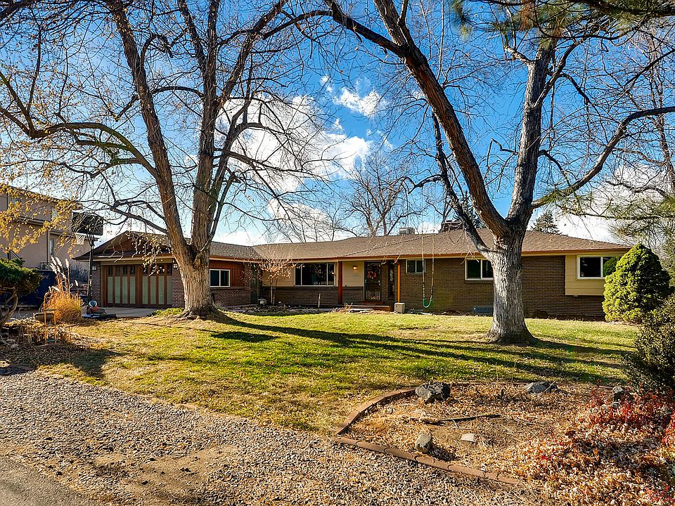 Even at 5 bedrooms, 3500 square feet and a 4-car garage, this sprawling ranch is modest compared to the other 10 architecturally unique homes on this short, lovely street. It’s tough to find a better site: 5 minutes to I-70 and 6th Avenue, 10 minute to downtown. Massive, private lot on a hillside in western Lakewood, tipped west for both mountain and Golden city lights views in the evenings. See it all from the large deck with a waterfall staircase, which reveals the lovely, unbuildable grass slope next door. This home is at the end of the street with almost no traffic! Sit on your private bridge over your "moat" (agricultural ditch) and eat a Honeycrisp apple off your tree, or some grapes or raspberries! On the other side of the ditch is the quiet, neighborhood walking trail. Your kingdom awaits – moat and all! *** M A I N L E V E L*** LIVING AREAS 1. Den with huge window and view to mountains, wood fireplace, ceiling fan 2. Living Room with massive window, park-like, private view east. BEDROOMS 1. Large Master with view of mountains/North Table Mountain, walk-In closet with great shelving and drawers, ceiling fan 2. Fabulous, large, newer corner window with window seat, crown molding (with switched plug for indirect LED lights!) 3. Bedroom with larger closet, adorable gender-neutral underwater mural, great for kids, lovely shaded and very private view to front yard BATHROOMS 1. Master in Bedroom 1 - Jack n Jill sinks, fabulous storage, shower stall, water closet 2. Hall bath –recent remodel w designer tile and fixtures, tub-shower combo with heavy, frameless door (plenty of room for washer-dryer if desired) KITCHEN 1. Eating space by huge window 2. Plenty of room for an island 3. Stainless frig, dishwasher, microwave 4. Lovely view over the sink! (watch the weather come in!) *** L O W E R L E V E L *** Walk-out with private, separate entrance at ground level, great for mother-in-law or older child arrangement. You can also access the lower level from a staircase inside the garage. LIVING AREA 1. Gigantic (30’x14’5”) living room with high ceiling, the massive, west facing windows have a private, treed view 2. Closet BEDROOMS 1. Giant room with gigantic amounts of shelving in 2 huge closets 2. Nice sized bedroom with great closet 3. Small, non-conforming “bedroom” 6’6”x10’, with normal-sized closet BATHROOM 1. Brand new complete remodel 2. Roughly 5’x5’ shower area (tons of room for a bench) 3. Granite sink 4. Fabulous textured wood-look floor tile UTILITY ROOM (roughly 10’x30’) 1. Washer-Dryer in place 2. Super-tall ceiling enables awesome storage *** S U B – B A S E M E N T *** It’s below grade, and has no windows. Access is a below-grade staircase to an exterior door. The boiler is in there, so the temperature is nice and warm in the coldest winters! Store your holiday décor, let junior play the drums, or sell your neighbors tickets to the single best tornado shelter in Lakewood!