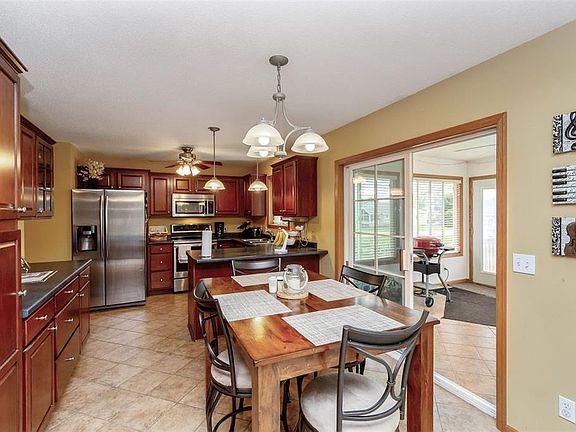 You'll feel at home as soon as you walk in the door! Wonderful, quiet neighborhood near Hunter's Ridge. Lots of room and lots of extras including: 3 Seasons Room (adds 144 sq ft), upgraded kitchen appliances (2 years old), 2 gas fireplaces (one looks like a wood burner), jetted tub, walk-in closet in Master, huge wet bar, walk-out basement, stamped concrete patio, fenced yard, a bonus room, and huge storage area in lower level. You need to schedule a showing for this one!