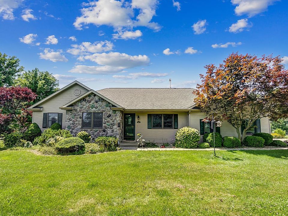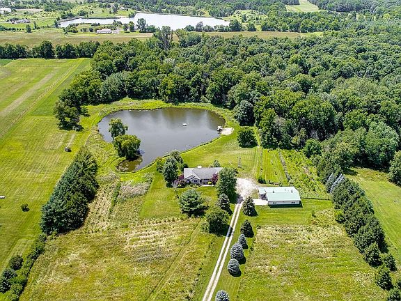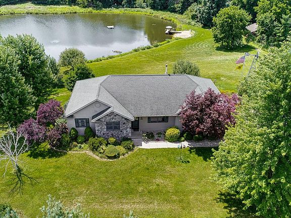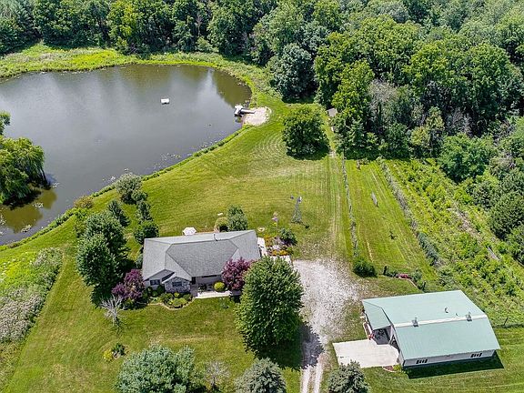 SELLERS WILL REVIEW ALL OFFERS AND MAKE A DECISION BY FRIDAY, JULY 29TH BY 12:00 NOON. Prepare to fall in love! 15.3 acres with a great ranch style home with a lower level walk out. A gorgeous two acre pond stocked with bass, perch, blue gill; what more could you ask for! There is a pier with a beach and cabin at the water's edge. You will absolutely love the heated 40 x 30 pole barn. There is an area that is all fenced next to the barn. And the barn has a stall and grain bin. Fruit trees include apple, pear, peach and cherry. Also black raspberries, and hops. The home is fantastic with three bedrooms and three full baths. Includes a Generac generator! There is a beautiful new fireplace in the living room with a wood mantel. Downstairs is a huge family room and another room, currently used as a craft room but could be a bedroom. Ten acres are all wooded with wide trails to walk and ATV. It has a Weir box to control the water table and an aeration system and pump driven by a windmill.The owners have entered into a conservation program with the State of Indiana, where hundreds of native trees have been planted along with many pollinators to encourage butterflies and birds. It is really a beautiful setting encouraging wildlife as it once was.