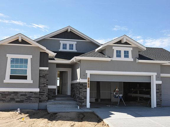 Ready in September. Sundance ranch plan with 3 car garage in Palermo at Flying Horse. *Design studio selections have not yet been finalized. Design upgrades pending. 4 bedroom, 3.5 bath home. Expanded shower at master bath. Barn door at laundry. Formal dining. Wood shelving in closets and A/C. Includes 2 gas fireplaces. Finished walk-out basement includes 1ft. taller ceilings, wet bar, plus 2 bedrooms, 1.5 bathrooms and recreation room. Outdoor living features custom multi-slide glass doors that open home to exterior!