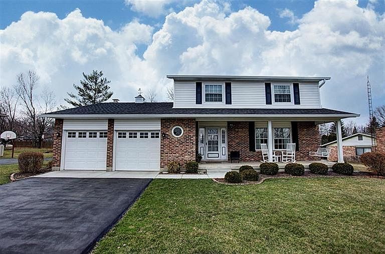 This fabulous 2 story home has received continual care from its original owners. Approx. 2400 sq ft of finished space! Inviting front porch leads to the foyer with ceramic tile which continues into the kitchen. Formal living room and dining room are full of natural light. The delightful kitchen has been updated with oak cabinets and includes a full appliance package! This area is open to the breakfast nook and family room. The family room has hardwood flooring and gas fireplace. Patio doors lead to a covered patio which overlooks a well-landscaped yard...great place to hang out this Spring! Upstairs are 4 bedrooms, all with hardwood flooring. The lower level is finished and has endless possibilities to do whatever suits your needs. A half bath is available. Other updates include newer roof, siding, furnace, AC, patio awning/fan, garage floor and walk, replacement windows, to name a few! Down the street is a park and swim club for summer fun, as well as the elementary school. Fabulous!