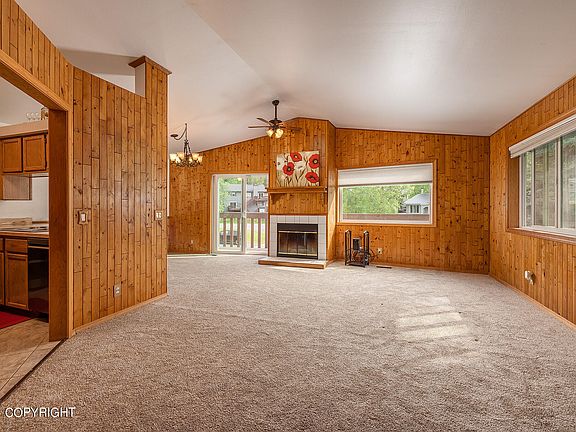 Charming Eagle River Home with Mountain Views and Abundant Natural Light! Nestled in a quiet cul-de-sac and backing onto a lush green belt, this beautiful home offers the perfect blend of comfort and tranquility. Cathedral ceilings and large windows flood the interior with abundant natural light, creating a warm and inviting atmosphere throughout.Step inside to discover a meticulously maintained interior boasting solid wood interior doors, a cozy fireplace, and a charming tongue & groove wall in the living room, adding to the home's rustic charm. The tiled foyer welcomes you into the heart of the home, where you'll find an updated kitchen, perfect for culinary enthusiasts. Relax in the generous master suite featuring an ensuite bath, while two additional bedrooms offer ample space for family or guests. With new carpet throughout and updated bathrooms, this home maintains its rustic appeal while offering modern comforts. Outside, a cedar fence provides privacy as you entertain or unwind in your own backyard. Enjoy the conveniences of being within walking distance to schools, having pedestrian-friendly sidewalks, and easy access to hiking trails, groceries, and green spaces. Don't miss your chance to call this Eagle River gem home. Schedule a tour today and experience the best of Alaskan living!
