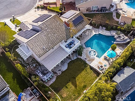 Stunning, stately and secluded, this 4 bed + bonus pool home on a sprawling 12,000 sq ft lot is the definition of perfection! Tucked away in a private cul de sac, the impressive stacked stone formal entry immediately attracts your attention. As you enter you'll be welcomed by a sweeping staircase trimmed in elegant millwork along with a formal living room with vaulted ceilings. The adjacent formal dining room is anchored by French doors leading to the outdoor covered patio, perfect for dining al fresco. The open concept kitchen and family room take center stage as the heart of the home. Gather around the gorgeous granite fireplace framed in warm wood or pull up a chair at the wet bar complete with custom lit cabinetry, sink, wine storage area, beverage refrigerator and plenty of counter space to serve all your favorite people. The refined gourmet kitchen provides rich custom cabinetry with recessed lighting, granite counters, travertine backsplash, stainless steel appliances and center island with room for storage and informal dining. Guests will feel right at home in the sizable main floor bedroom with ensuite bath which is perfect as a second master suite or guest quarters which provides a separate entrance and direct access to the backyard. Retreat upstairs to the owners suite with vaulted ceilings, stacked stone fireplace and balcony access. Relax the day away in the master bath which includes a luxurious soaking tub, walk in shower and dual vanities. The upstairs is completed by two ample sized guest bedrooms, an upgraded shared bath and a separately accessed bonus room with beamed ceilings, sophisticated wainscoting and cabinetry. Escape to the backyard and take a dip in the salt water pool with rock features and water slide, lounge under the covered patio, cozy up by the fire pit or grill up something tasty at the outdoor kitchen with BBQ grill, prep sink and bar seating. Additional features include a downstairs powder room, individual laundry room, 3 car garage space with epoxy flooring, RV parking, dual thermostats and AC units. Minutes from featured dining and entertainment at the Yorba Linda Town Center and zoned for award winning Yorba Linda High School truly make this rare and special home the one you’ve been waiting for!