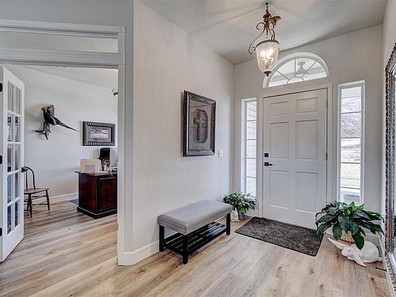 Beautiful remodeled home on stunning acreage. Open floor plan that has been nicely remodeled kitchen, bathrooms, floors and paint. You will love the setting of this home nestled in this manicured treed acreage. Great curb appeal with easy access to the Kickapoo Turnpike. Horses are allowed. Roof was put on May of 2021.