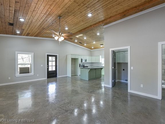New construction home at Tenkiller Lake! Come to the lake an chill with this low maintenance home located in the Woodhaven subdivision. This property is close to the boat ramp, marina, and restaurants. There is an additional 1100 feet of carport and porch to cover your lake gear or to use for grilling season. The outside roof and exterior are metal for years of enjoyment and insurance savings. Step inside and you will see ceilings covered in ponderosa pine, granite counter tops, stained concrete floors, and tile shower surrounds. The builder still has a few items left to polish but this home is ready for tours/offers!