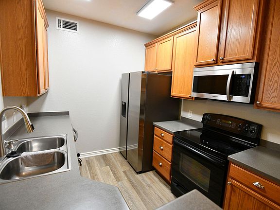 This cute 2 bedroom 1 bath with 1 car garage is in a great location, close to Stroh Soccer field, shopping, and Cherry Creek trail. Bathroom is very large and has a double vanity sink. The second bedroom is currently used as an office with a built-in desk for work from home convenience. New paint, LVP wood floor throughout unit except new carpet in bedrooms, and most appliances. Washer and dryer in unit. 1 stall detached garage. Storage closet, view of community pool, child playground in neighborhood. Owner pays Hoa which includes water. Tenant to pay electric, gas and cable/internet.