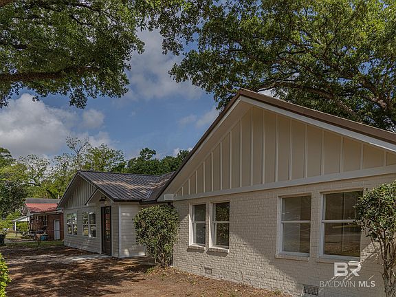 MOTIVATED SELLER! Experience historic charm with modern comfort in this beautifully updated 4BD/3BA home in the heart of Robertsdale. Originally a 1909 dairy farm, this 2,542 sq ft home was converted and expanded in the 1950s into a warm and inviting family homestead. Nestled on a spacious corner lot surrounded by mature oak trees, it offers a serene, country-like setting just steps from downtown.Enter through an 8' mahogany door into a bright, wide-open living space. The professional-grade gallery kitchen flows into a large butler’s pantry with butcher block counters, sink, and drink cooler—perfect for entertaining. A separate laundry room with utility sink adds functionality.The spacious master suite features a soaring 9’ cathedral ceiling, oversized 8x4 tiled shower with Bluetooth speaker, dual vanities, make-up area, and private toilet room. The master closet is equally impressive with thoughtful design and generous storage. Upgrades include all new windows, two high-efficiency A/C units, two water heaters, all new plumbing and electrical, new insulation, and a durable metal roof—ensuring energy efficiency and peace of mind. Step outside to enjoy a 35’ covered back porch and built-in outdoor kitchen, ideal for relaxing or hosting. walkable to everything in downtown Robertsdale including shops, walking path, and the new outdoor amphitheater (coming Spring 2026). Only a 2-minute walk to Robertsdale Elementary and quick access to Robertsdale High School and the Beach Express. This one-of-a-kind property combines history, space, and convenience—don’t miss your chance to make it yours! All information deemed reliable but not guaranteed. Buyer to verify all info. Buyer to verify all information during due diligence.